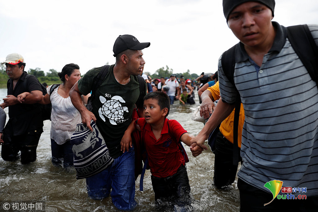 當?shù)貢r間2018年11月2日,墨西哥與危地馬拉邊界,中美洲移民繼續(xù)向美國挺進。圖片作者:UESLEI MARCELINO