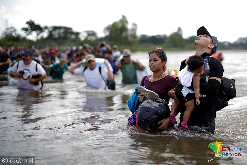 當(dāng)?shù)貢r間2018年11月2日,墨西哥與危地馬拉邊界,中美洲移民繼續(xù)向美國挺進(jìn)。圖片作者:UESLEI MARCELINO