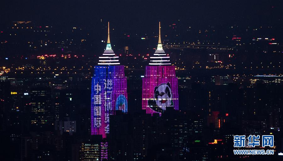 11月2日,上海環(huán)球港的燈光展示出首屆中國國際進(jìn)口博覽會標(biāo)識和吉祥物“進(jìn)寶”的形象。 首屆中國國際進(jìn)口博覽會即將在上海開幕。美麗的上海張開懷抱,迎接八方來客。 新華社記者 王建華 攝
