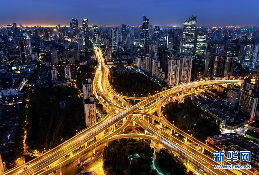 這是11月2日拍攝的上海延安高架路與南北高架路交匯處的立交橋。 首屆中國國際進(jìn)口博覽會(huì)即將在上海開幕。美麗的上海張開懷抱,迎接八方來客。 新華社記者 李鑫 攝