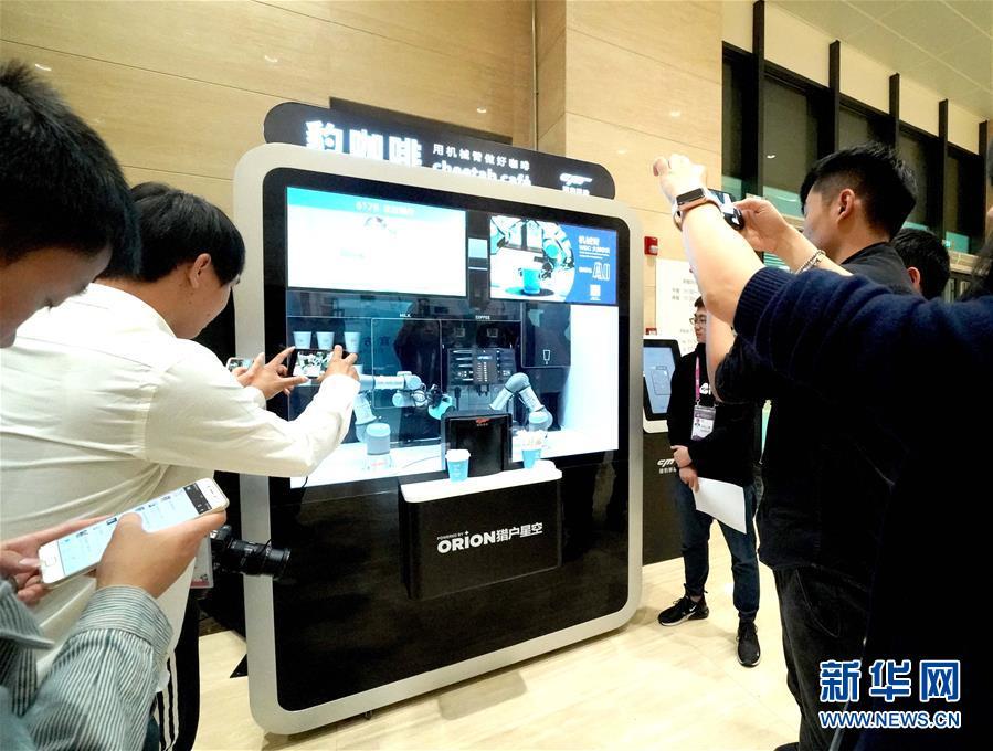 11月4日,媒體記者在首屆中國國際進(jìn)口博覽會新聞中心拍攝無人咖啡亭。 新華社記者陳建力攝