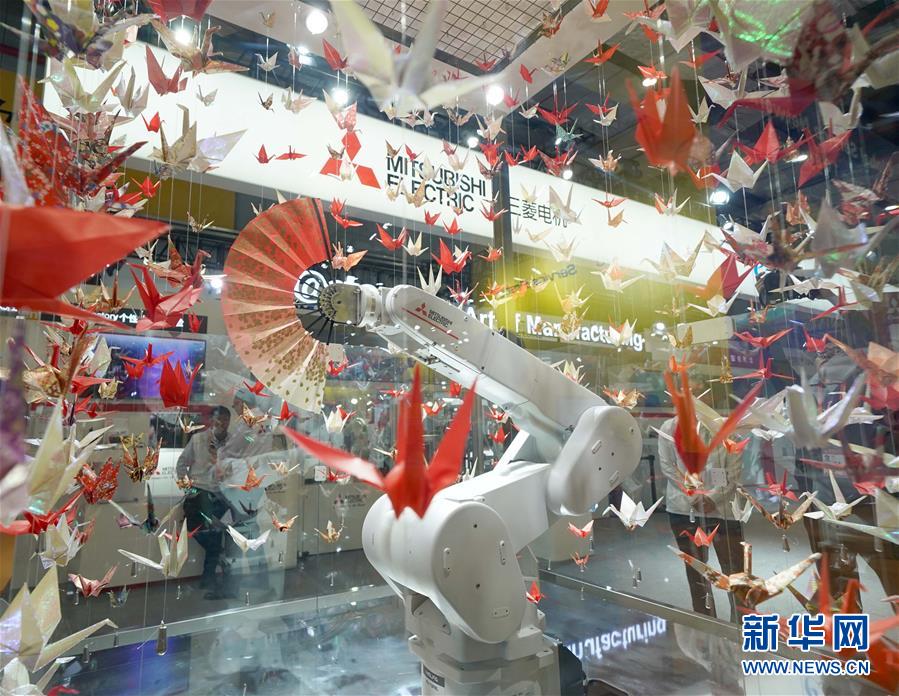 11月6日,日本三菱電機(jī)公司展臺上的扇子舞機(jī)器人進(jìn)行表演。 新華社記者 陳建力 攝