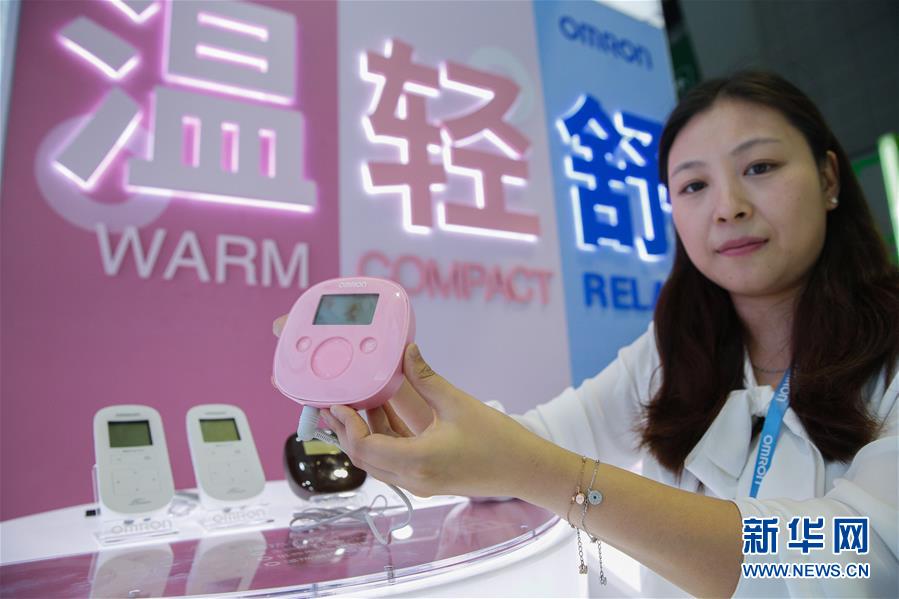11月6日,日本歐姆龍公司工作人員展示首次在中國亮相的新款溫?zé)岬皖l治療儀。該款產(chǎn)品搭載國際疼痛學(xué)會定義的能有效緩解女性生理痛的按摩頻率。 新華社記者 張玉薇 攝