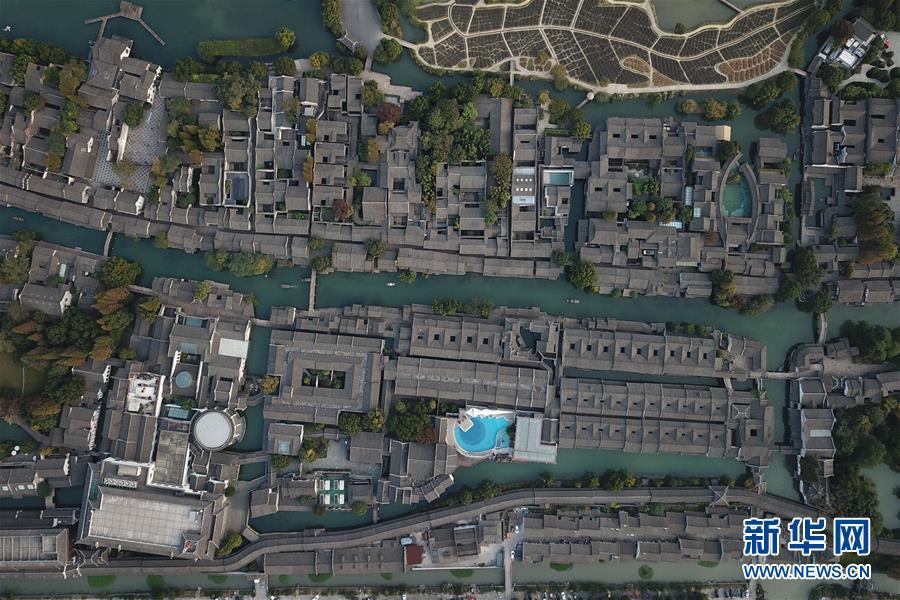 這是10月31日無(wú)人機(jī)拍攝的烏鎮(zhèn)西柵景區(qū)。 新華社記者黃宗治攝