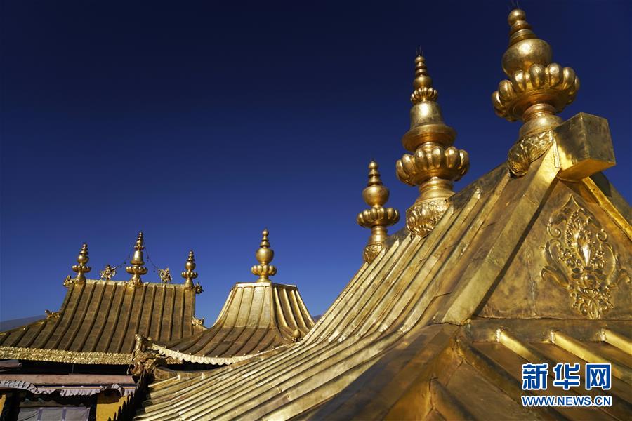 修繕后的布達(dá)拉宮金頂局部(11月7日攝)。 新華社記者普布扎西 攝