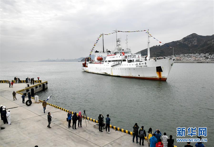 11月7日,“大洋一號”駛?cè)胛挥谇鄭u市嶗山區(qū)的青島海洋科學(xué)考察基地碼頭。新華社記者 李紫恒