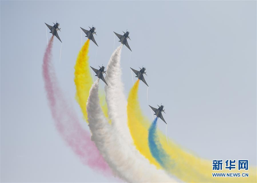 11月6日,中國(guó)空軍八一飛行表演隊(duì)在航展現(xiàn)場(chǎng)進(jìn)行飛行表演。當(dāng)日,第十二屆中國(guó)國(guó)際航空航天博覽會(huì)在珠海開幕。 新華社記者鄧華攝