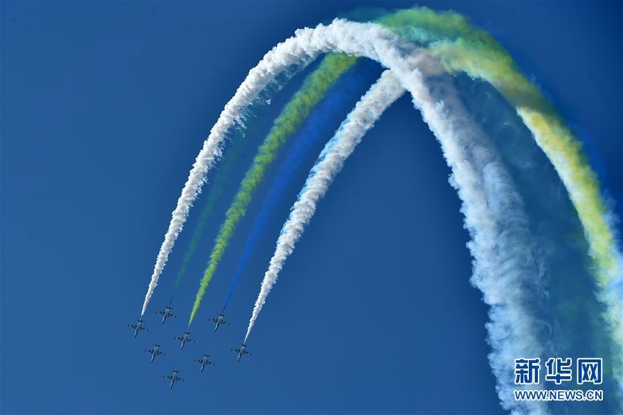 11月6日,空軍航空大學(xué)“紅鷹”飛行表演隊(duì)在航展現(xiàn)場進(jìn)行飛行表演。當(dāng)日,第十二屆中國國際航空航天博覽會在珠海開幕。 新華社記者梁旭攝