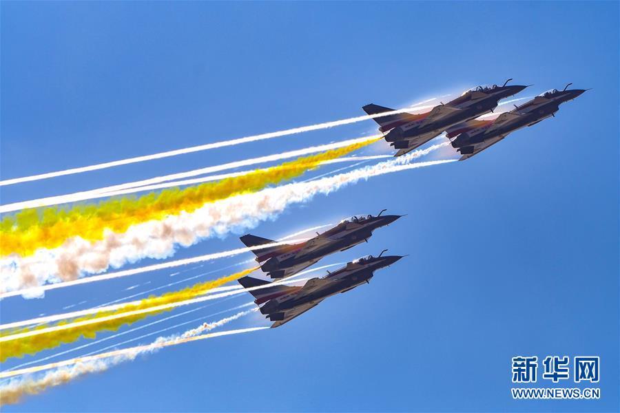 11月6日,中國空軍八一飛行表演隊在航展現(xiàn)場進行飛行表演。當日,第十二屆中國國際航空航天博覽會在珠海開幕。 新華社記者楊光攝