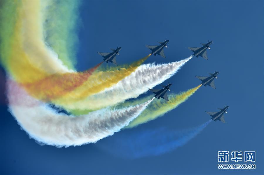 11月6日,中國空軍八一飛行表演隊在航展現(xiàn)場進行飛行表演。當日,第十二屆中國國際航空航天博覽會在珠海開幕。新華社記者梁旭攝