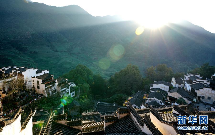 雨后放晴的江西婺源縣,藍天白云與依山傍水的徽派古村落形成了一幅幅美麗畫卷。