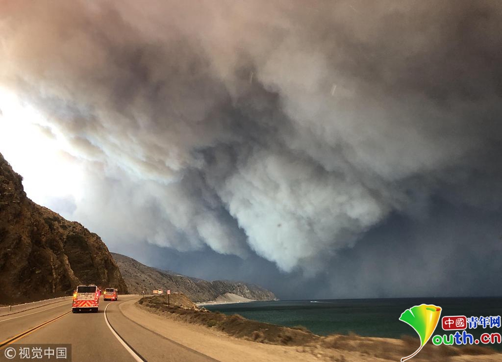 當(dāng)?shù)貢r(shí)間11月9日下午,美國(guó)加利福尼亞州南部文圖拉郡(Ventura County)等地熊熊山火已延燒逾萬(wàn)英畝,濃煙遮天蔽日。