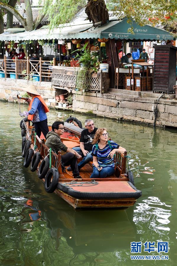 游客們在蘇州市吳江區(qū)同里古鎮(zhèn)乘船游玩(10月31日攝)。 新華社記者 李博 攝