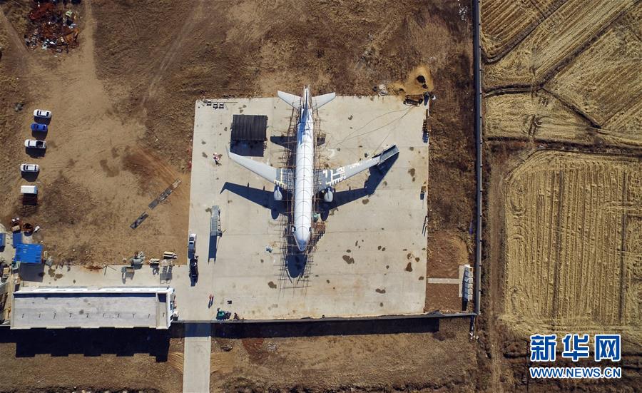 這是11月10日在遼寧開原老城街道前三臺(tái)子村拍攝的朱躍團(tuán)隊(duì)手工制造的“飛機(jī)”(無(wú)人機(jī)拍攝)。 新華社記者 楊青 攝