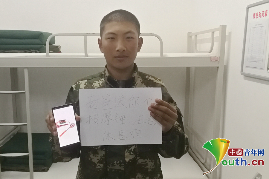 “爸爸說最近肩膀有點痛,給他買個按摩錘,工作別太辛苦,要注意休息?!蔽渚本┛傟爤?zhí)勤第二支隊供圖。