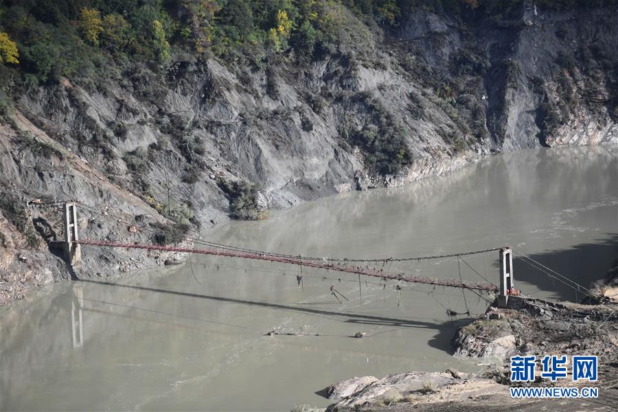 10月20日,西藏雅魯藏布江米林縣堰塞湖自然過流后,通往加拉村的大橋完全浮出江面。 10月19日13時30分,西藏雅魯藏布江米林縣堰塞湖開始自然過流。記者從應(yīng)急管理部牽頭的聯(lián)合工作組獲悉,截至20日7時,雅魯藏布江堰塞湖壩前水位已下降56米,估算留存水量1.6億立方米,堰塞湖洪水威脅得到緩解,防洪安全風(fēng)險大大減輕,并將繼續(xù)降低。 10月20日,記者乘坐直升機從空中拍攝了雅魯藏布江堰塞湖自然過流的畫面。 新華社記者普布扎西攝