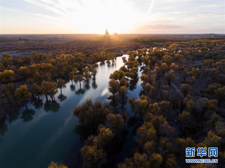 這是在內(nèi)蒙古自治區(qū)額濟(jì)納旗拍攝的胡楊林(10月10日無(wú)人機(jī)拍攝)。 金秋時(shí)節(jié),內(nèi)蒙古自治區(qū)額濟(jì)納旗胡楊林如同披上金裝,成為大漠中的一抹亮色,吸引眾多中外游客前來(lái)觀賞游玩。 新華社記者劉磊攝