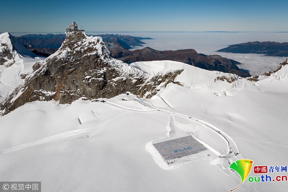“少女峰”上展示的十萬(wàn)多張明信片,呼吁關(guān)注氣候變暖。