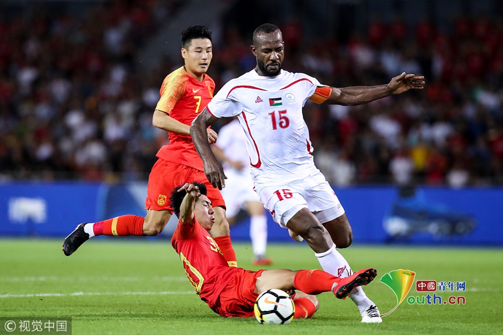2018年11月20日,??冢?018國際足球友誼賽,中國男足Vs巴勒斯坦。郜林拼搶 圖片作者:null