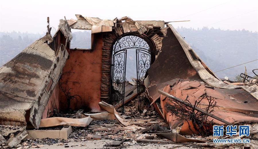 這是11月20日在美國(guó)加利福尼亞州比尤特縣天堂鎮(zhèn)拍攝的山火廢墟。