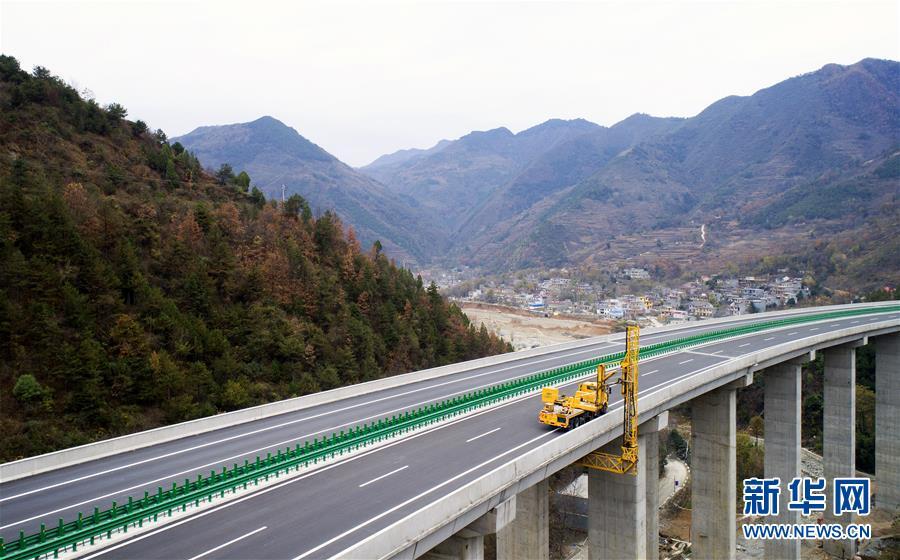 11月20日,在水陽(yáng)高速公路左家灣特大橋上,橋梁檢測(cè)車在進(jìn)行通車前的檢測(cè)作業(yè)(無人機(jī)拍攝)。 近日,記者從陜西省交通建設(shè)集團(tuán)公司了解到,陜西柞水至山陽(yáng)高速公路已全線貫通即將通車。據(jù)介紹,(柞)水(山)陽(yáng)高速公路全長(zhǎng)78.8公里,開通后將實(shí)現(xiàn)包茂高速、福銀高速在陜南商洛地區(qū)的連接,開辟出秦嶺南麓的一條橫向高速大通道,對(duì)完善陜西高速公路路網(wǎng)結(jié)構(gòu)、促進(jìn)陜南區(qū)域經(jīng)濟(jì)發(fā)展、加快山區(qū)群眾脫貧致富具有重要意義。 新華社記者劉瀟攝