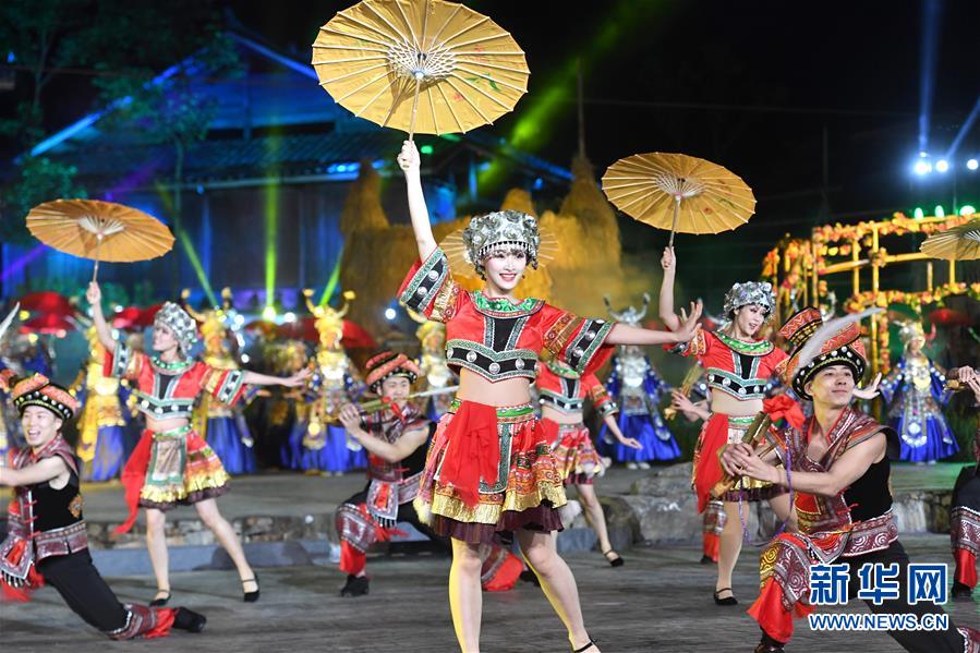 11月21日,演員表演歌舞《風(fēng)從苗山來》。 當日,廣西柳州市第一屆旅游產(chǎn)業(yè)發(fā)展大會暨2018第十八屆中國·融水苗族蘆笙斗馬節(jié)開幕式晚會在融水苗族自治縣舉行。 新華社記者 周華 攝