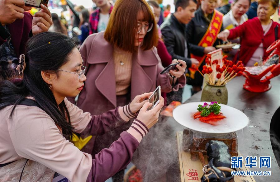 10月19日,重慶火鍋美食文化節(jié)現(xiàn)場展出的各色火鍋菜品吸引眾人拍攝。 當日,第十屆中國(重慶)火鍋美食文化節(jié)在重慶市江北區(qū)正式開幕。本屆火鍋美食文化節(jié)為期4天,以“麻辣happy城市節(jié)日”為主題,50000平方米的展區(qū)吸引了70余個火鍋品牌、300余家火鍋供應鏈企業(yè)參展,萬人同燙火鍋的盛況在“火鍋之都”重慶再現(xiàn)。 新華社記者 劉潺 攝