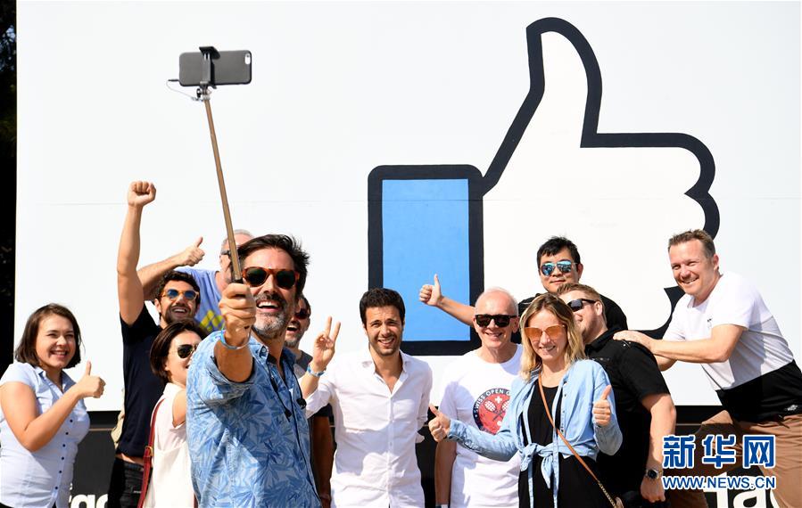 8月11日,在美國舊金山灣區(qū),參加“臉書節(jié)”的游客在臉書園區(qū)標志前合影。當日,舊金山灣區(qū)臉書園區(qū)舉行“臉書節(jié)”,人們在活動中欣賞文藝表演,品嘗美食,乘坐游樂設施等,活動收入將捐給慈善團體。新華社記者吳曉凌攝