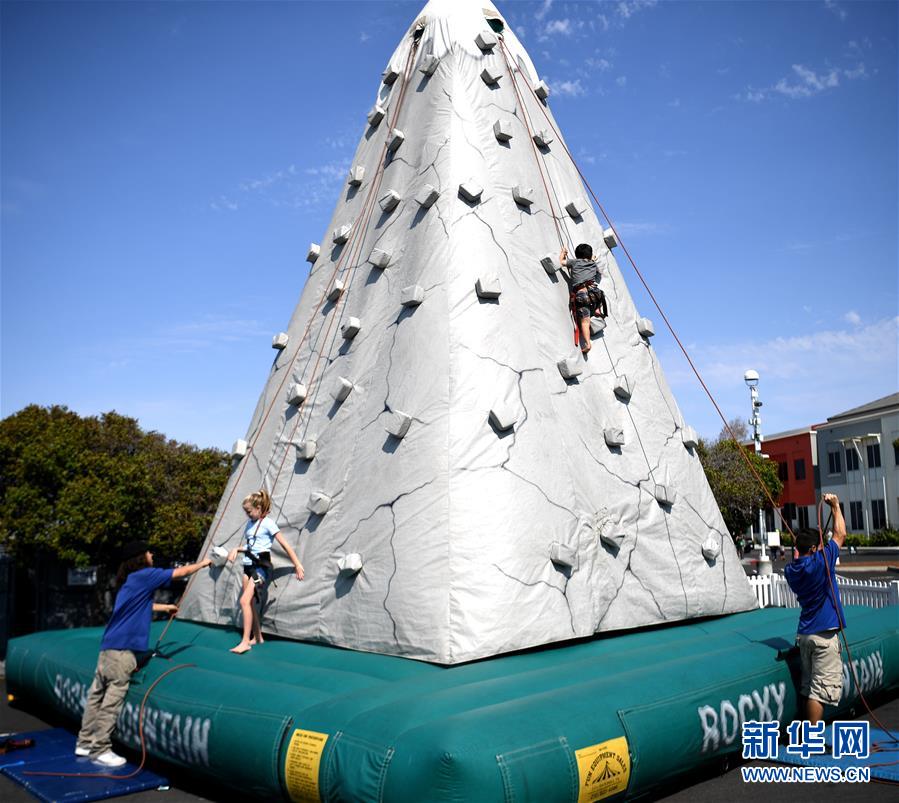 8月11日,在美國舊金山灣區(qū),人們在“臉書節(jié)”的游戲區(qū)游玩。當日,舊金山灣區(qū)臉書園區(qū)舉行“臉書節(jié)”,人們在活動中欣賞文藝表演,品嘗美食,乘坐游樂設施等,活動收入將捐給慈善團體。新華社記者吳曉凌攝