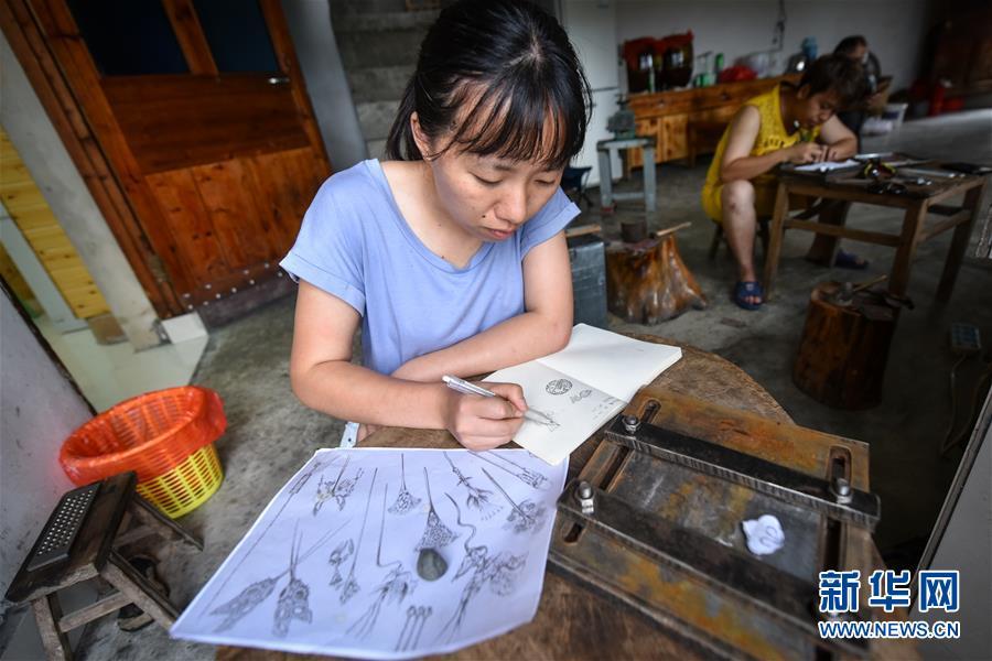 唐白梅是美國(guó)一所高校首飾設(shè)計(jì)專(zhuān)業(yè)的在讀研究生,專(zhuān)門(mén)利用暑假時(shí)間到雷山縣學(xué)習(xí)銀飾工藝。 “以前挑著擔(dān)賣(mài)貨,賣(mài)不完回不了家;現(xiàn)在有了網(wǎng)上銷(xiāo)售,太方便了?!痹谫F州省黔東南苗族侗族自治州雷山縣西江鎮(zhèn)控拜村,50歲的銀匠龍懂陽(yáng)拿著手機(jī)查看全國(guó)各地發(fā)來(lái)的銀飾訂單,七月份的銷(xiāo)售額輕松超過(guò)了一萬(wàn)元。雷山縣的銀匠主要集中在控拜、麻料、烏高三個(gè)村,銀飾加工已經(jīng)有600多年歷史。作為銀匠家族的第九代傳人,龍懂陽(yáng)從14歲開(kāi)始便挑著銀飾走村串鄉(xiāng),上門(mén)推銷(xiāo)。但山鄉(xiāng)偏僻路途遙遠(yuǎn),客源又有限,這種方式僅能勉強(qiáng)維持收支。為了賺錢(qián),龍懂陽(yáng)放棄了傳統(tǒng)手藝,到溫州打工賣(mài)皮鞋。隨著家鄉(xiāng)的道路修通,苗寨的游客越來(lái)越多,銀飾品打開(kāi)了新銷(xiāo)路。2014年,龍懂陽(yáng)建起了銀匠鋪,重拾本行。在當(dāng)?shù)胤鲐毟刹亢涂腿说膯l(fā)下,他建起了銀飾展示廳,開(kāi)了網(wǎng)店,線上訂單源源不斷。