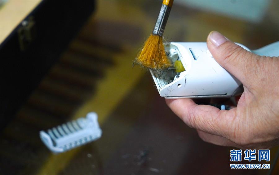11月13日,鄒勤敏在家中準(zhǔn)備理發(fā)用的工具。