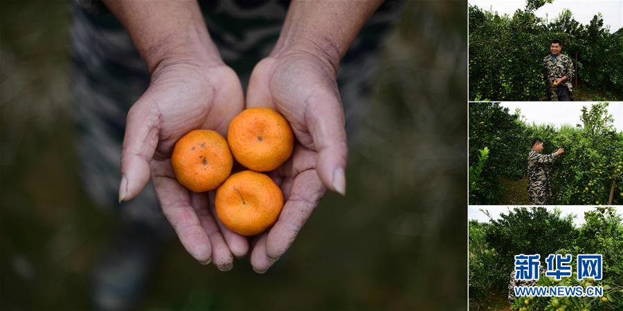 拼版照片:左圖為在永樂鎮(zhèn)四莫村,莫文振在果園里手捧剛剛摘下的桔子;右圖為莫文振在果園里勞作(照片均攝于11月19日)。莫文振從2012開始種植柑桔和甘蔗,2016年實(shí)現(xiàn)脫貧。 廣西融水苗族自治縣是國家扶貧工作重點(diǎn)縣,全縣“九山半水半分田”,生活生產(chǎn)環(huán)境較為惡劣,脫貧攻堅(jiān)任務(wù)艱巨,目前還有7.68萬貧困人口。面對(duì)經(jīng)濟(jì)發(fā)展落后、貧困面廣且程度深的現(xiàn)狀,當(dāng)?shù)匕衙撠毠?jiān)與創(chuàng)新產(chǎn)業(yè)扶持相結(jié)合,依托生態(tài)資源優(yōu)勢,實(shí)施“特色產(chǎn)業(yè)富民行動(dòng)”,通過發(fā)展特色民族旅游、林下經(jīng)濟(jì)和特色養(yǎng)殖業(yè)等扶貧產(chǎn)業(yè),帶動(dòng)貧困群眾依靠勤勞的雙手,拔窮根摘窮帽,實(shí)現(xiàn)脫貧致富。據(jù)了解,目前全縣貧困戶參與特色產(chǎn)業(yè)發(fā)展的有2.9萬戶,扶貧產(chǎn)業(yè)覆蓋率達(dá)95%。 新華社記者 黃孝邦 攝