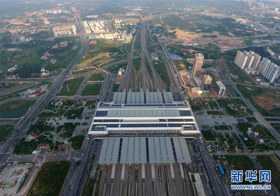 這是“零換乘”立體綜合交通樞紐——廣西南寧東站(9月4日無人機(jī)拍攝)。 廣西壯族自治區(qū)成立60年來,鐵路建設(shè)發(fā)生翻天覆地的變化。來自中國鐵路南寧局集團(tuán)有限公司的數(shù)據(jù)顯示,1958年廣西鐵路總里程為1346.3公里,如今廣西鐵路總里程達(dá)5191公里。廣西與周邊相鄰省份間實(shí)現(xiàn)動(dòng)車“公交化”開行。此外,北部灣港—重慶班列、東盟海產(chǎn)品冷鏈班列、“百色一號(hào)”果蔬專列等的開通和運(yùn)營(yíng),強(qiáng)化了鐵路供給的針對(duì)性和有效性。鐵路成為助推廣西經(jīng)濟(jì)社會(huì)快速發(fā)展的“大動(dòng)脈”。 新華社記者陸波岸攝