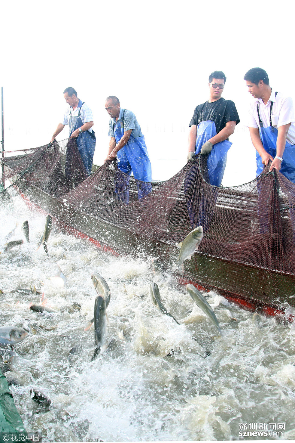 2018年6月26日,江蘇省常州市嘉澤鎮(zhèn)捕撈村的漁民組織夏季捕撈,一網(wǎng)魚達(dá)五萬余斤,以鰱魚為主,供應(yīng)市場(chǎng)需求。夏捕的魚價(jià)較平時(shí)有所上漲,漁民粗略估計(jì)可增收上萬余元。
