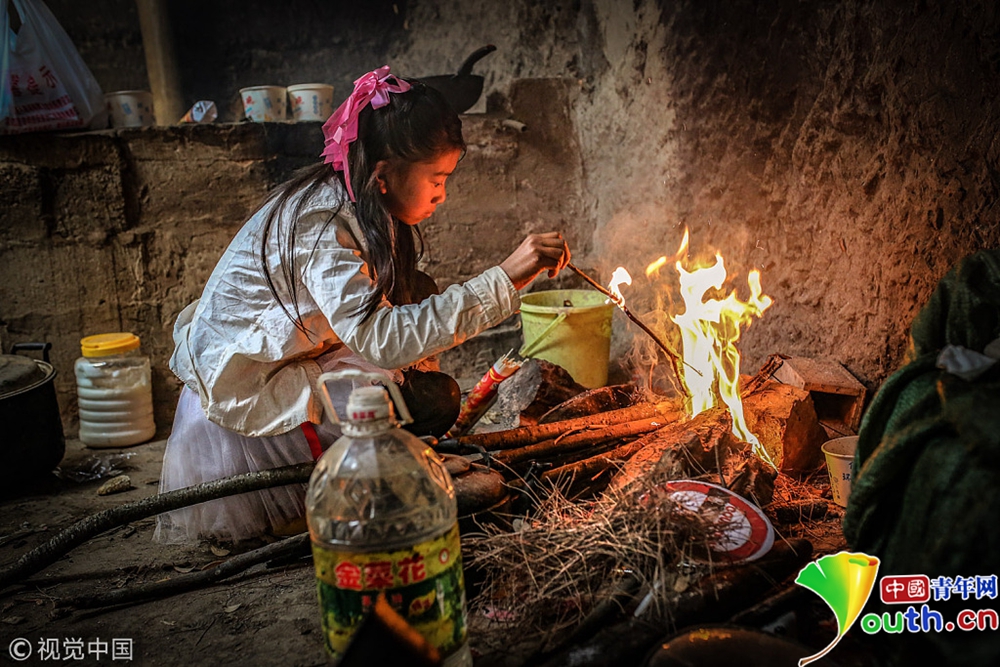 家中的的灶臺(tái)是用幾塊石頭搭起來的。