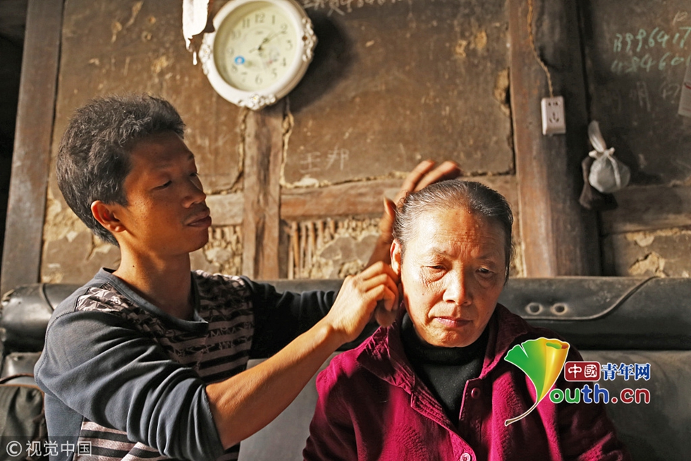 37歲的王顯強(qiáng),家在重慶市綦江區(qū)永新鎮(zhèn)伏牛村。23年前,王顯強(qiáng)的母親田井貴意外摔倒導(dǎo)致全身癱瘓,吃喝拉撒全由王顯強(qiáng)的父親照顧。2003年,王顯強(qiáng)的父親去世,深受打擊的田井貴從此開(kāi)始不再和外人說(shuō)話?!拔覌尵褪俏业娜?!”原本在浙江打工的王顯強(qiáng)回到家里,為了養(yǎng)活自己和母親,他決定背著母親到重慶主城打工。從此,身材不高的王顯強(qiáng),用自己不算厚實(shí)的后背,讓母親有了新的依靠。