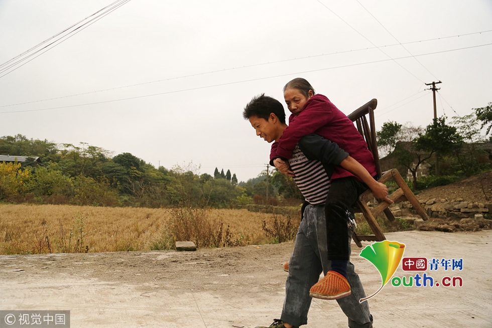 因為要用更多的時間照顧母親,能接受王顯強的企業(yè)并不多,好不容易進了廠,給他的工資也不高?!皦蛄?,只要能養(yǎng)活我和媽媽,我不在乎其他的?!本瓦@樣,王顯強背著母親輾轉(zhuǎn)重慶主城,打工了15年。
