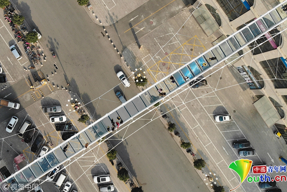 據(jù)現(xiàn)場(chǎng)的檢票工作人員介紹,這座玻璃吊橋是今年10月1日正式對(duì)外開放,每逢周末都會(huì)吸引很多人前來體驗(yàn),成了當(dāng)?shù)匾蛔熬W(wǎng)紅橋”。