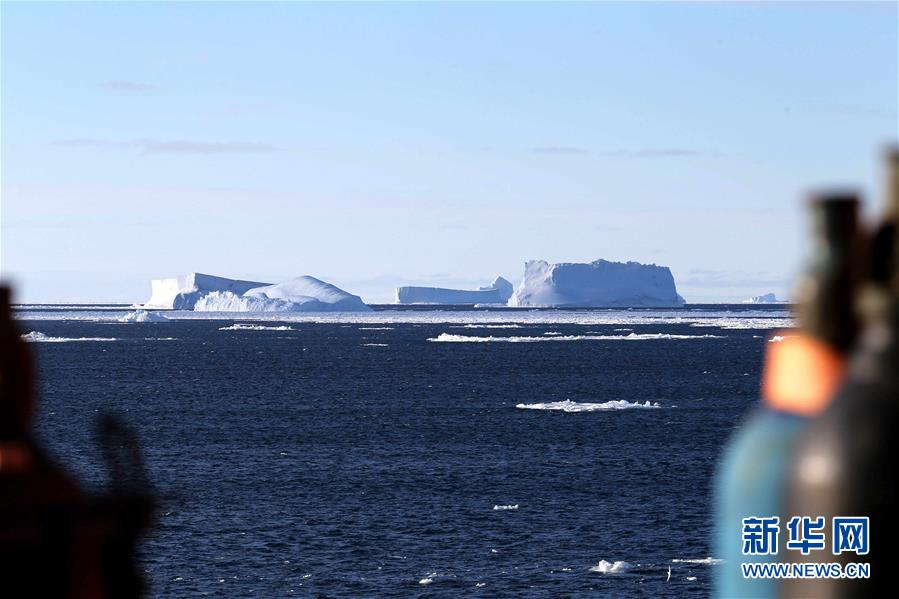 從“雪龍”號(hào)極地考察船上拍攝的普里茲灣海域冰山群(11月29日攝)。 新華社記者 劉詩(shī)平 攝