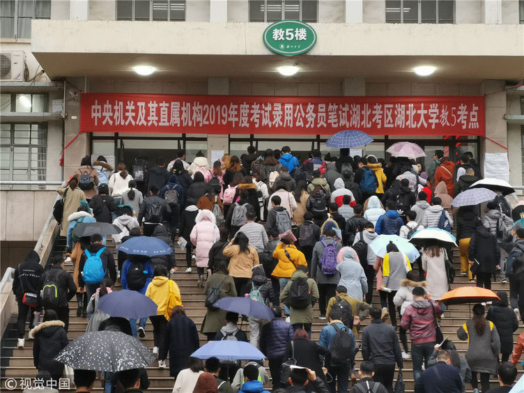 2018年12月2日,湖北武漢一公務(wù)員考點(diǎn),密密麻麻的考生進(jìn)向考場。當(dāng)日,2019年度中央機(jī)關(guān)及其直屬機(jī)構(gòu)公務(wù)員招考筆試開考。楚林/視覺中國