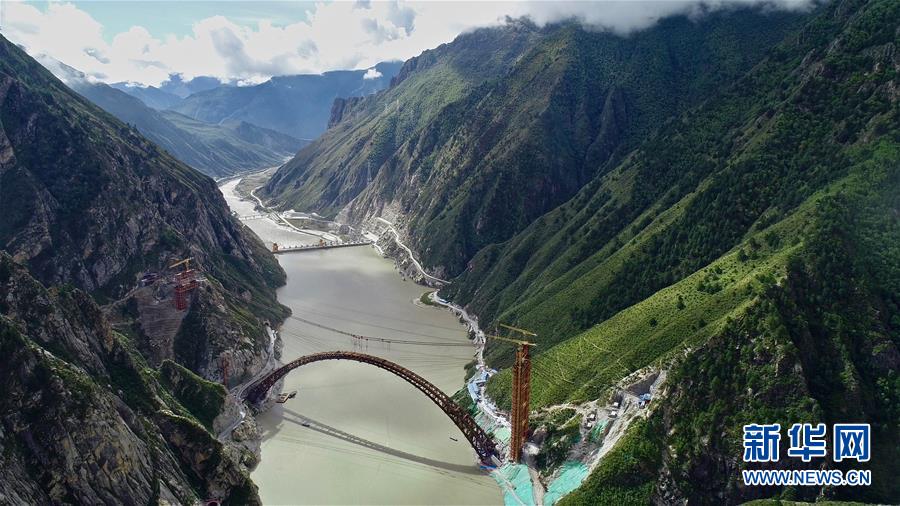 9月28日拍攝的川藏鐵路拉林段重點標(biāo)志性工程藏木特大橋。 當(dāng)日,隨著最后一節(jié)鋼管拱的對位和鎖定完畢,川藏鐵路拉林段藏木特大橋成功合龍,標(biāo)志著大橋主體結(jié)構(gòu)施工取得了關(guān)鍵性勝利。藏木特大橋由中國中鐵廣州局集團承建,拱高112米,橋橫跨雅魯藏布江峽谷,水深66米。 新華社記者普布扎西攝