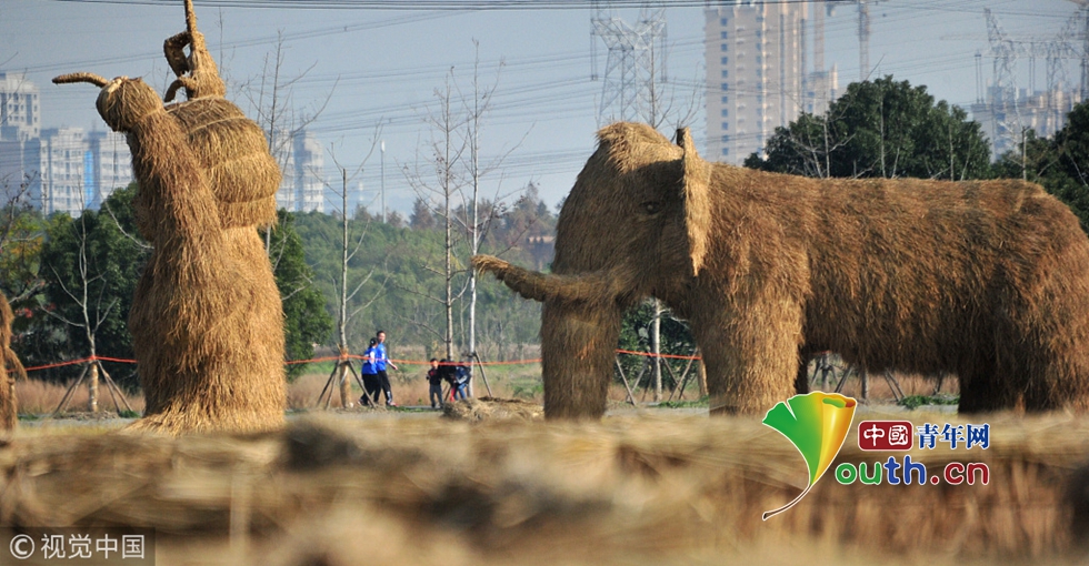 據(jù)悉,原本收割過的早稻由于不能焚燒,會直接粉碎入田。如今這些早稻的秸稈被搭成了景觀雕塑,也成了一道廢物利用的特色風(fēng)景。圖片來源視覺中國