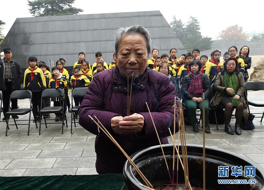 12月3日,南京大屠殺幸存者石秀英焚香祭奠被侵華日軍殺害的親人。 當日,在第五個南京大屠殺死難者國家公祭日到來之際,南京大屠殺死難者遺屬家祭活動在侵華日軍南京大屠殺遇難同胞紀念館正式啟動。首批前來開展家祭活動的南京大屠殺幸存者余昌祥、石秀英老人分別率家屬在紀念館內(nèi)的死難者名單墻前獻花、敬香、跪拜,并誦讀家信,表達對親人的哀思。 新華社記者 孫參 攝