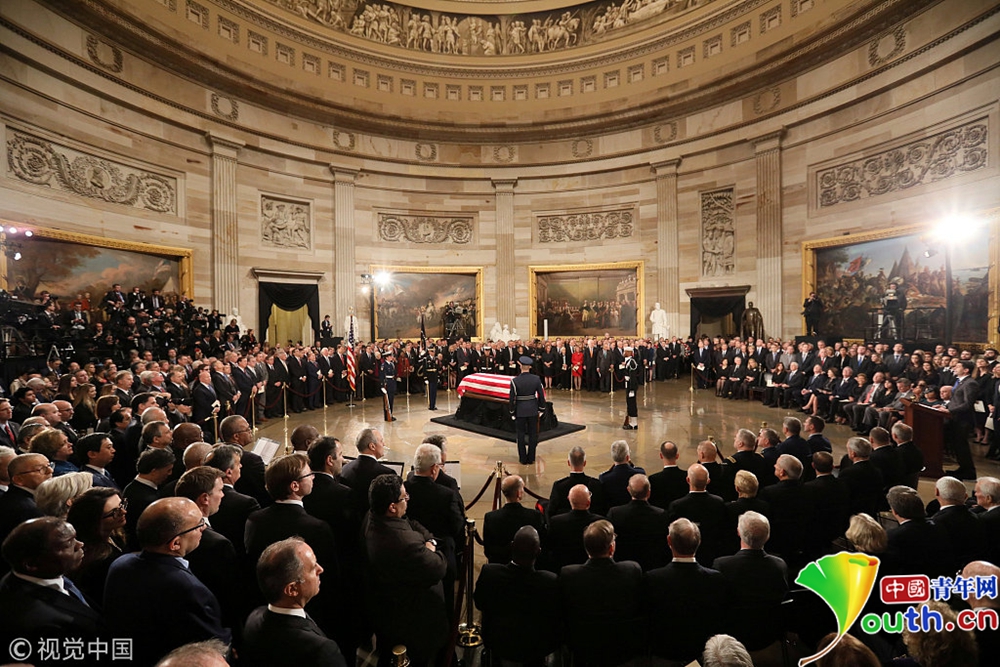 美國(guó)歷史上,只有33名逝者的遺體擺放在國(guó)會(huì)大廈圓形大廳內(nèi)供人們瞻仰,包括從“一戰(zhàn)”到“越戰(zhàn)”期間的11位總統(tǒng)以及不知名士兵。