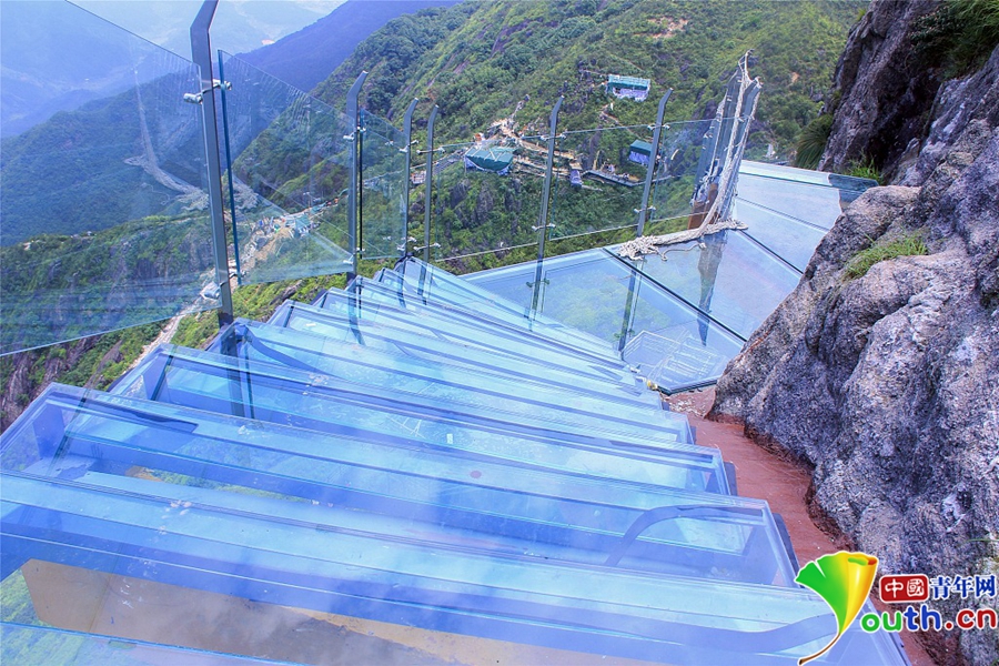 經(jīng)過(guò)一年的建設(shè),位于素有“嶺南第一險(xiǎn)峰”與“南粵小華山”之稱(chēng)的廣東清遠(yuǎn)連山金子山,有一條玻璃天梯建成。下個(gè)月10日,玻璃天梯將正式對(duì)游客開(kāi)放。