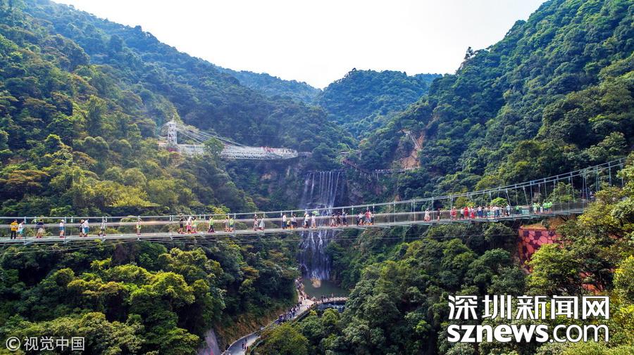 廣東清遠(yuǎn):臺(tái)風(fēng)“山竹”過(guò)后 最長(zhǎng)玻璃橋安然無(wú)恙