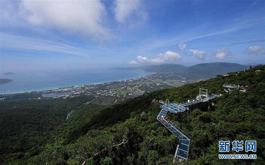 8月31日,游客在玻璃棧道上參觀(guān)游覽。近日,位于海南省三亞市亞龍灣熱帶天堂森林公園的大佛石全海景玻璃棧道開(kāi)始正式營(yíng)業(yè)。凌空而建的玻璃棧道全長(zhǎng)400米,游客可將亞龍灣的美景盡收眼底。新華社記者郭程攝