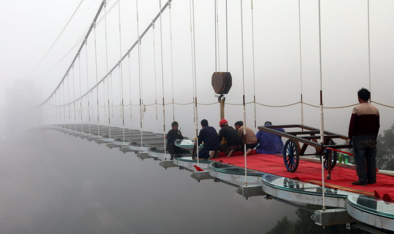 恐高勿進(jìn)!玻璃橋這樣鋪成!