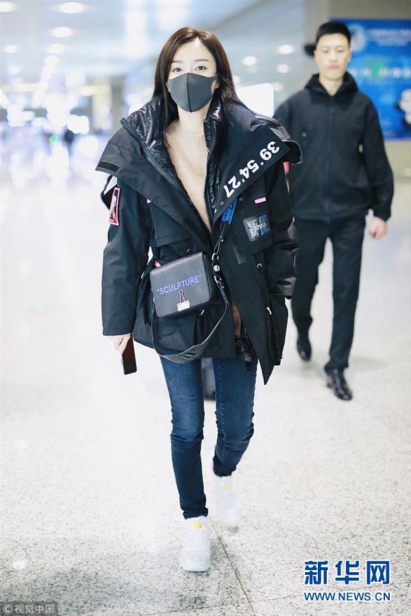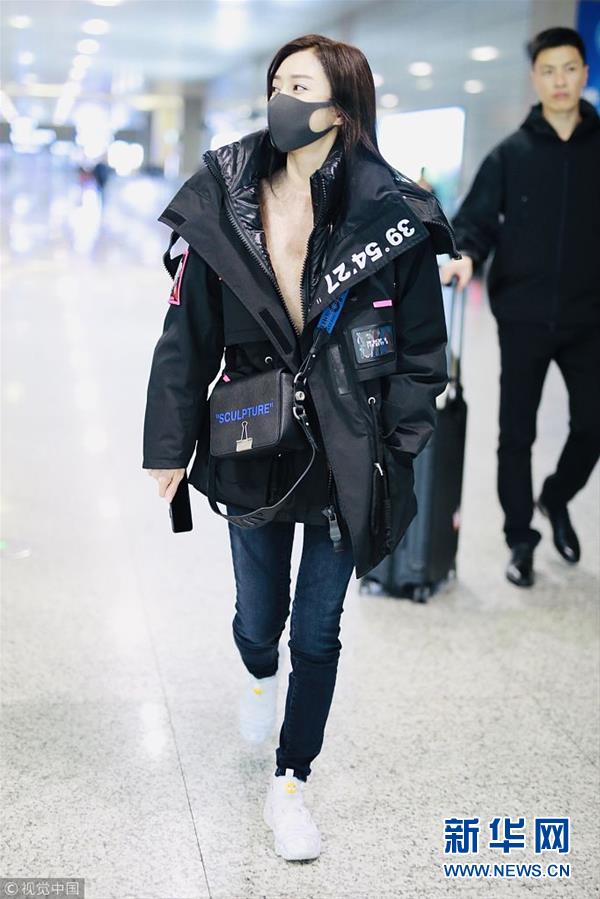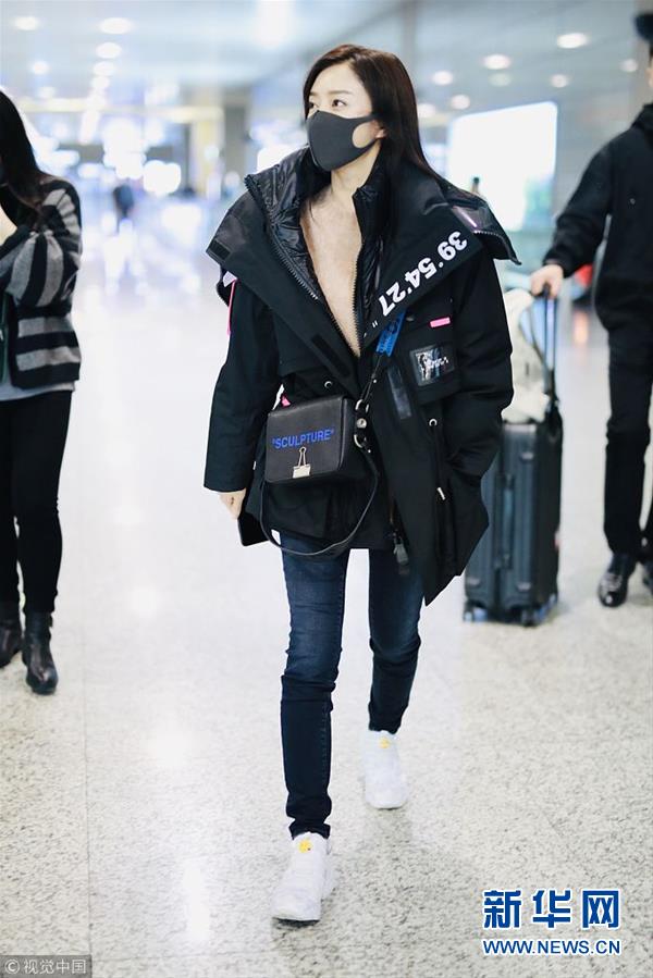 2018年12月3日,上海,秦嵐亮相機(jī)場。潮味棉服亮相機(jī)場變酷女孩,口罩遮面露甜笑心情靚。(圖片來源:視覺中國)