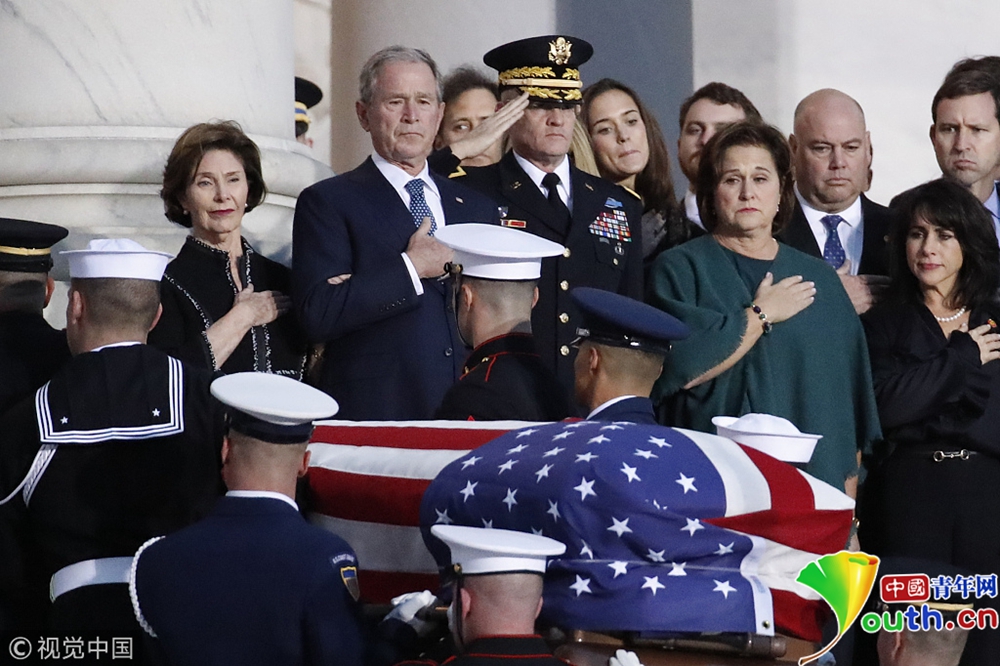 美國(guó)第41任總統(tǒng)喬治·赫伯特·沃克·布什(老布什)的靈柩從他的家鄉(xiāng)休斯頓運(yùn)抵首都華盛頓市郊,他的遺體將從當(dāng)天晚上開始放于國(guó)會(huì)圓形大廳,供民眾瞻仰。
